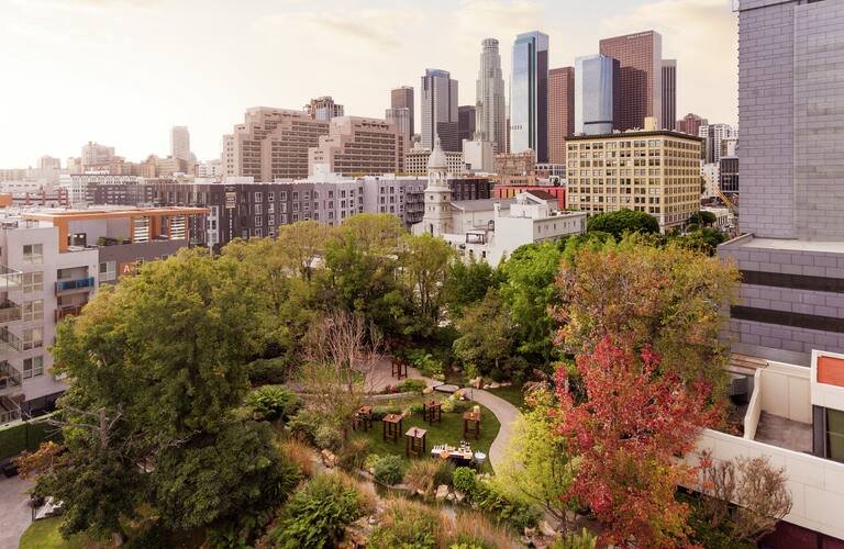 Daily Mandatory Charge includes: CA Tourism and City Assessment. Experience the best of LA at the DoubleTree by Hilton Los Angeles Downtown, a full-service hotel in the heart of downtown. Located in Little Tokyo and just a few blocks from the Financial District, our hotel gives you easy access to L.A. LIVE/Convention Center/Staples Center, the Arts District, and China Town. We're 15 miles from LAX International Airport and Burbank Airport, and just two blocks away from Union Station and LA Metro.